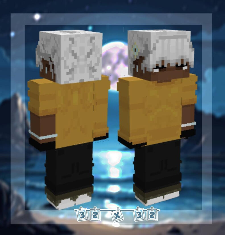 - Minhas skins 3D, tanto as alterações que faço, quanto as skins 3D do zero são feitas exclusivamente para utilizar no mod "Custom Player Models", disponível apenas para minecraft java, o que me impossibilita fazer skins com o 3D para minecraft Bedrock/PE;